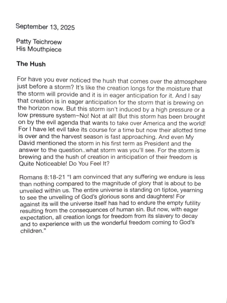 Ha! I woke to these Words, “Watch and Pray — for Trump is the Gavel of Justice in God’s Righteous Right Hand!”