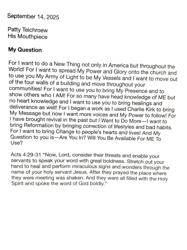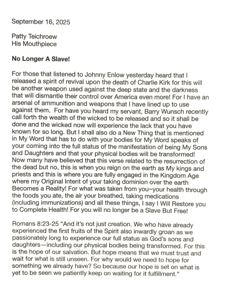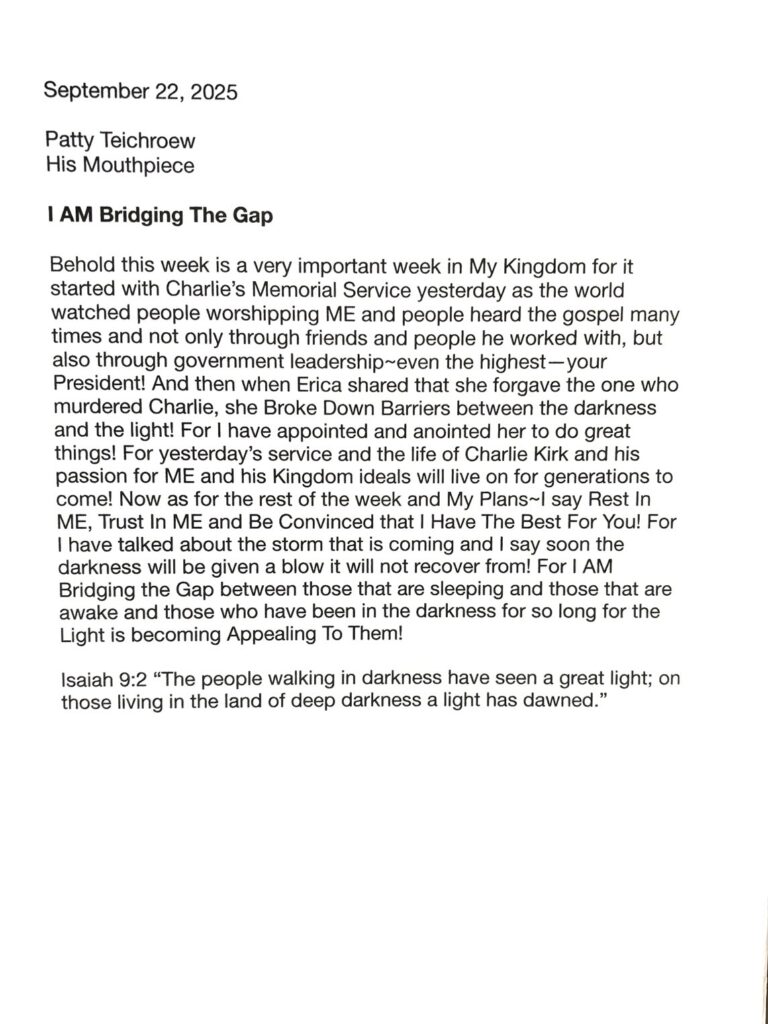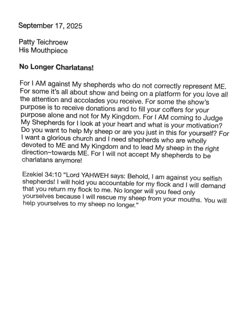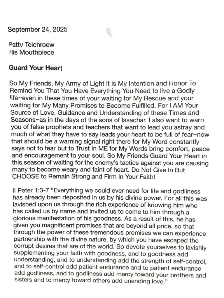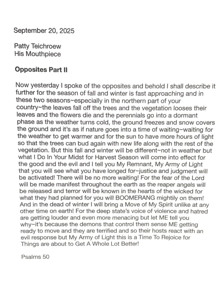 The Great and Terrible Day will rid MY World of their woke, green agenda. No more, I say. Many will come home (He is talking about the prodigals) and they will become the child that I created them to be and the one that you desired them to be. Welcome your prodigals with open arms.