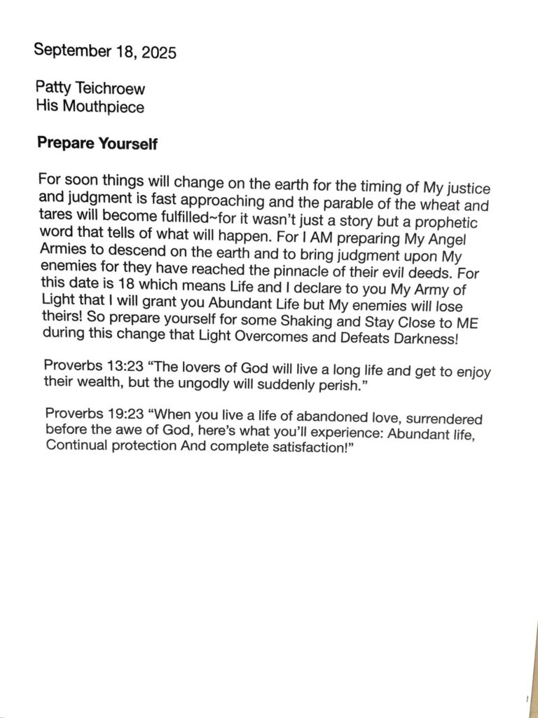 I love you and soon you will have the most joyous, peaceful days of your life. So prepare through fasting and prayer and faith and hope. That’s it.
