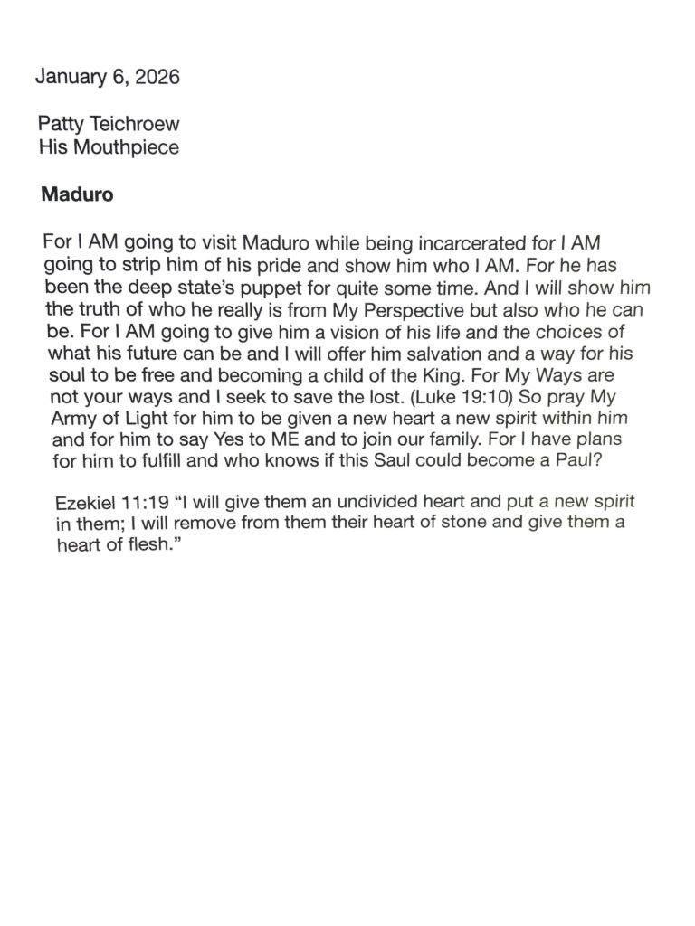 The situation of the leader of Venezuela is apropos. Thus I returned the evil which he committed against Me and the people of Venezuela. I make all the evil return on the head of those committing it. Upon them lands a curse. It’s the law of sowing and reaping.
