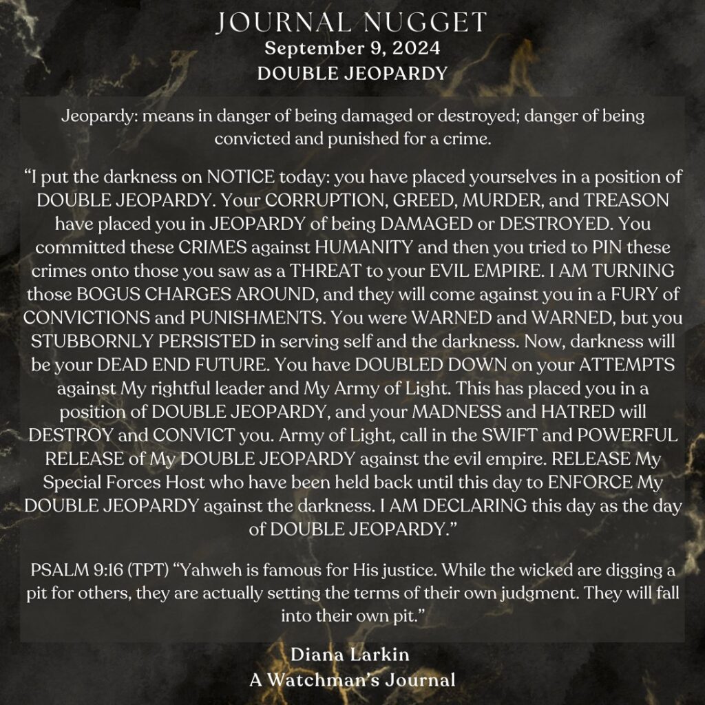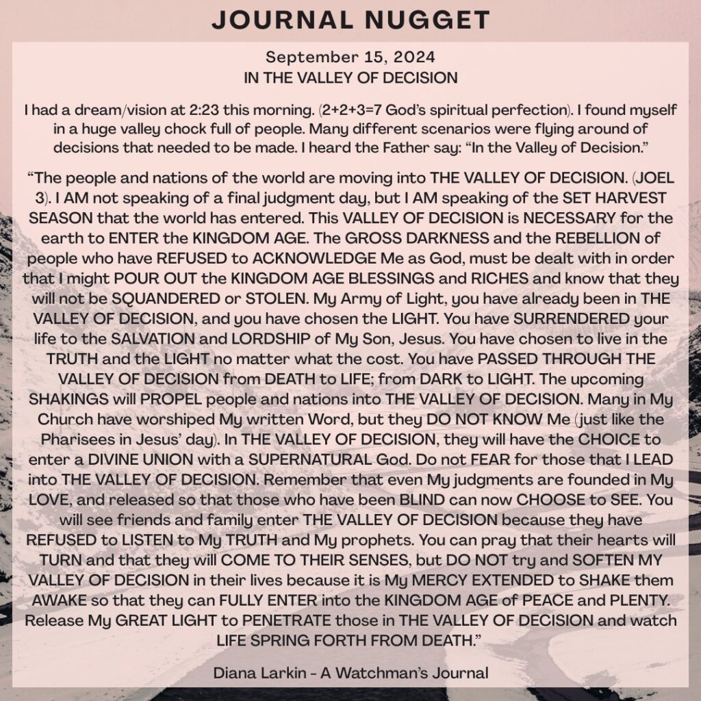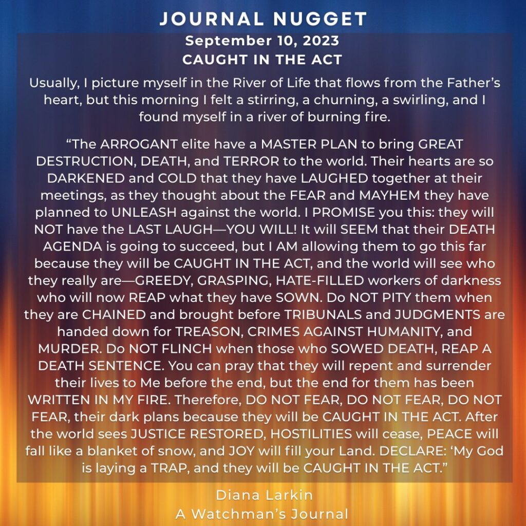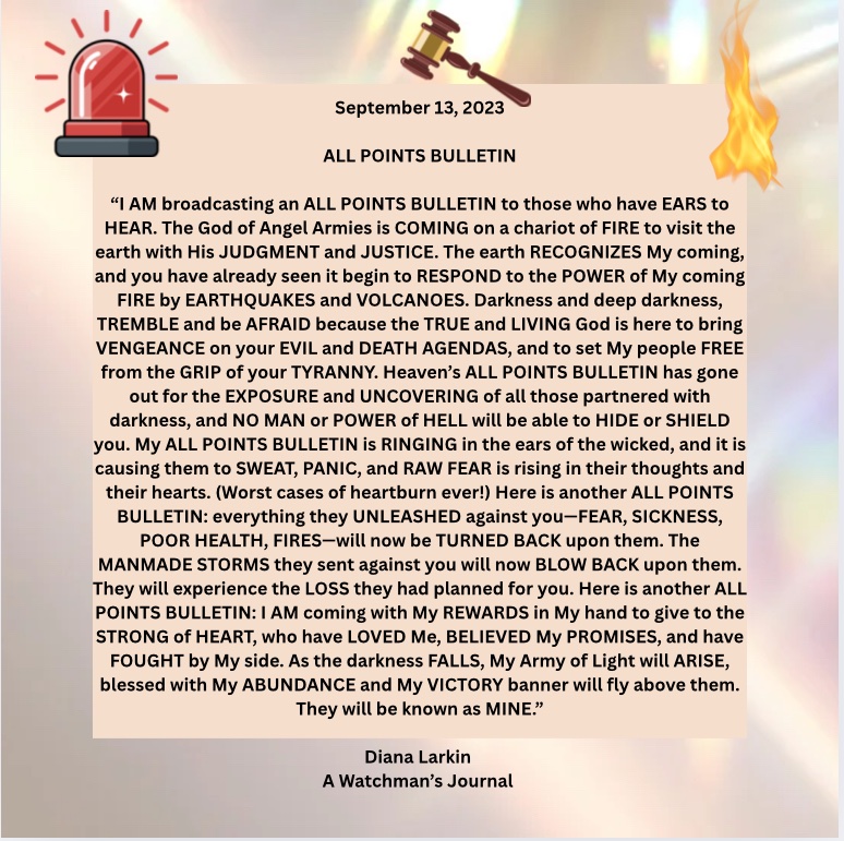 I have had you on a journey of faith. I did this because I want you to know that there is no reason for you to be afraid. I want you to have the confidence that will be required when the event happens. I know it’s only one day, but it will be a day that will live in infamy. So even though I have not allowed you to remember your dreams recently, I will also repair, and heal, and restore your memories. I wanted you to speak what you are hearing, and live in a place where you recognize that I provide. So watch. Many will come to my children after that day and you will have the answer. You will not only have the answer but will be able to point back to prophecies fulfilled. There are many reading what you are posting and will remind you of what I said to you, and Steve will also be used in this way to show people what has been said. Steve Shultz needs to bring on Julie Green and not listen to those who have told him lies about my daughter. This is necessary. Do not limit the voice of Dave Scarlett, or of Emanuel Johnson. Bring on those who are my scribes like you, Patty, and yes the one who sits at the table in Heaven, Diana Larkin. Do not hinder the voice of my Prophets. You were given the platform to do this and yet some have whispered in your ear. Do not forget about what I said to you in Texas, and in California. You are the voice of the Prophets, and you will see that soon these who you have neglected will rise to the top. My hidden ones. This also includes Carolyn Dennis. So do not take this as an attack on you Steve, my child. Remember, you were the one who saw the prophets when it was a newsletter and let their voices be heard.