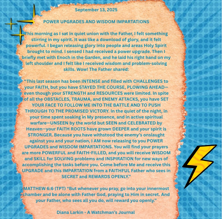 For the curtain is being drawn, and the veil is being lifted. Not only has the response to Charlie Kirk been a massive shift towards many of my lost sheep returning to the arms of the Father, but it also has removed the covering over my hidden ones. For the reaction and response revealed those who truly have my heart for the hurting. I am going to reward this compassion with a manifestation of my love working through you. Too many of my children are examining themselves in fear, and wondering if they are going to miss the mark on that day. Yet they forget the monumentous love that I have for each of them. Do you not remember the one found dirty, and bloody on the side of the street, and yet it was the Samaritan who came to his aid? I know the spiritual pollution that exists. I know that some make mistakes, and that others feel as though they have not done enough. Study the lesson of the Cross. For it was not what you could do but rather what My Son did in shedding his blood for the sins you have committed. The war is tough, but even when it seems you are failing you are unaware of what I am doing behind the scenes, and what the eventual outcome will be. So cry out to me, and cry out for those who are lost, and for those who are soon to face the reality of the harvest they have coming to their lives. My love for you is so great and I desire all to come to repentance. My intervention will be for the furtherance of the Kingdom, and a greater harvest than what many think. The glory of the latter house will be greater than the former. So let the fire of Holy Spirit burn within you and empower you to go forth as a mighty army for righteousness, justice, truth, mercy, and love. Remember family, and remember covenant. You are not just members of a church. You are part of the family of Almighty GOD, and as your Father I do not cast my children aside easily. Just as you look to protect, care for, provide, teach, and raise your own children, I do so much and more for you. So do not think this to be a battle you fight alone. Think of this as the family of GOD positioned to wreck the gates of hell and take back all that the enemy has stolen. Expect the fires of revival to grow because the light is now shining so brightly the enemy has been backed into a corner. There will be one last clarion call for repentance that will soon come to the wicked. Pray they hear this and realize what is at stake. I take family seriously, as I always have. So arise my children and know who you truly are as sons and daughters of the King! Soon you will see the battle you fought, the victory won, and the spoils of war that will be used for you and future generations! And in the book in Heaven will be written these words “these are the ones who chose to stand, fight, and believe.”