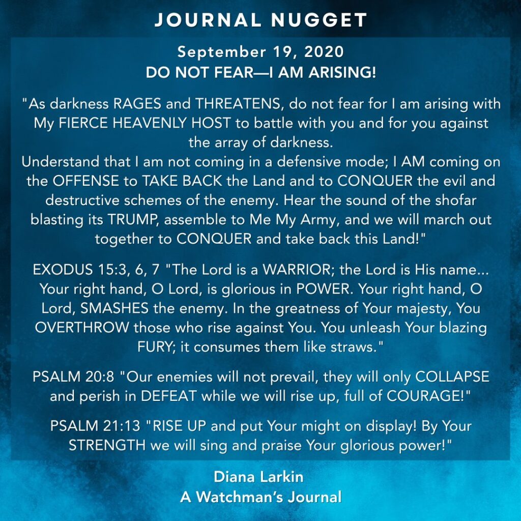 There are two things taking place currently. One in the physical and one in the spiritual. In the physical my David is positioning those final pieces on the chess board. The Military and other law enforcement agencies are receiving their orders and will soon make their move. In the Spiritual there is a gathering of Angels who have come from Heaven with a scroll to deliver the final blow to those partnered with the Wicked and the godless, and so it shall be that every stone will be lifted, and every hiding place shall be found. None will hide and none shall escape. For as the administration is poised to strike the deepstate, and rid the world of the cabal so I am poised to strike and rid the world of much of the demonic influence that has been empowering them. I am speaking of the watchers and the nephilim spirits. So both will happen simultaneously. Oh, and Freemasons, you do not get to wear a new coat to fool the masses into believing you have been on the side of the righteous. I know who you swear allegiance to, and though some men may fall to your tricks and sleight of hand you will not fool me. For in my eyes there is no veil thick enough to hide the horrendous acts you have been part of or turned a blind eye to. So My children as this war rages you will notice momentum on the side of the light, and you will soon recognize that battles will be won easier and easier still. So Declare VICTORY over the enemy. For your patience will be rewarded and also the time spent standing for My Kingdom and My Righteousness. Simultaneously will the enemy be attacked just like the final battle of AI. For man’s weapons could prevail without my intervention, yet the enemy forgets that it isn’t the President and the administration he needs to be afraid of. It is my strong arm of deliverance that will both bring justice to the wicked and reward for the righteous.