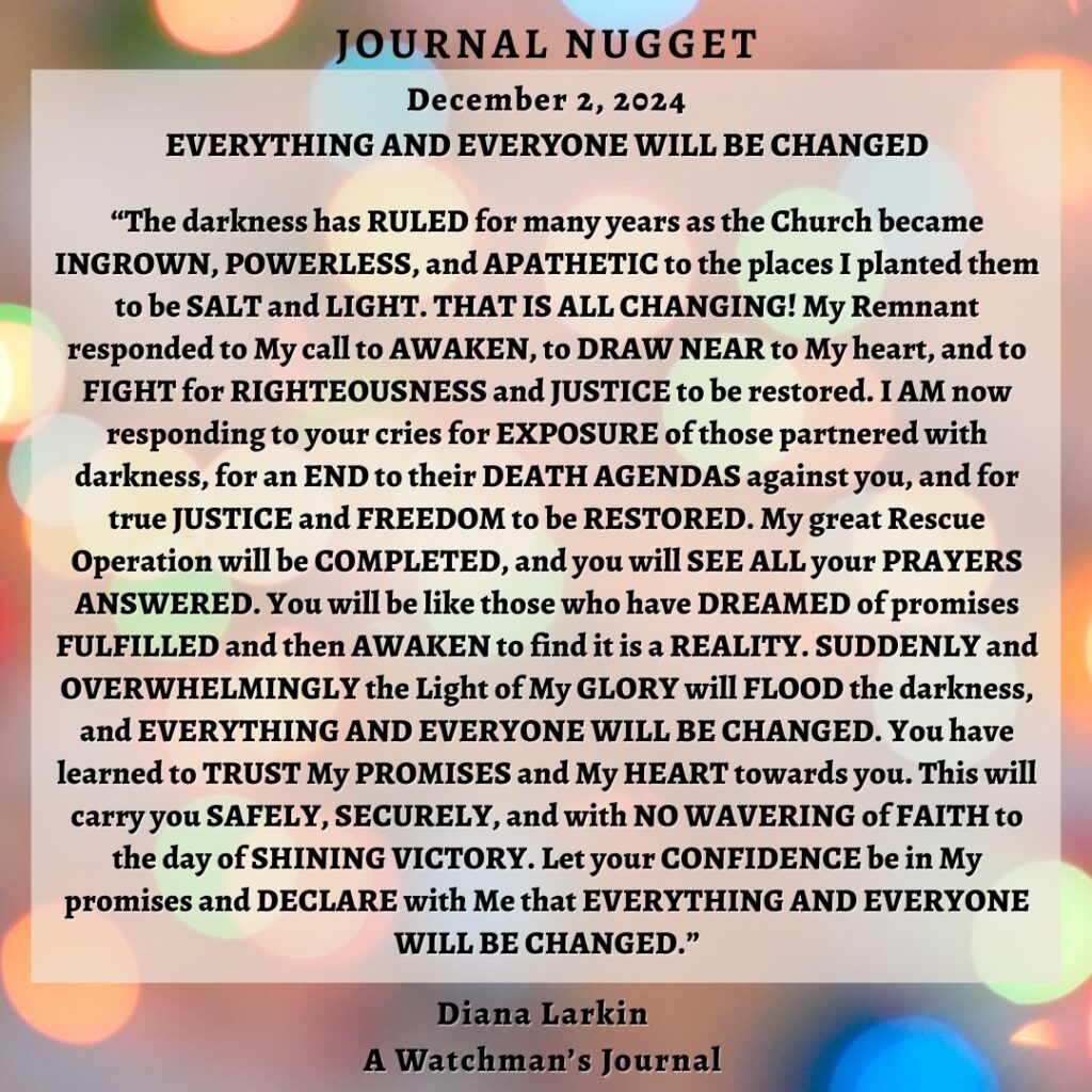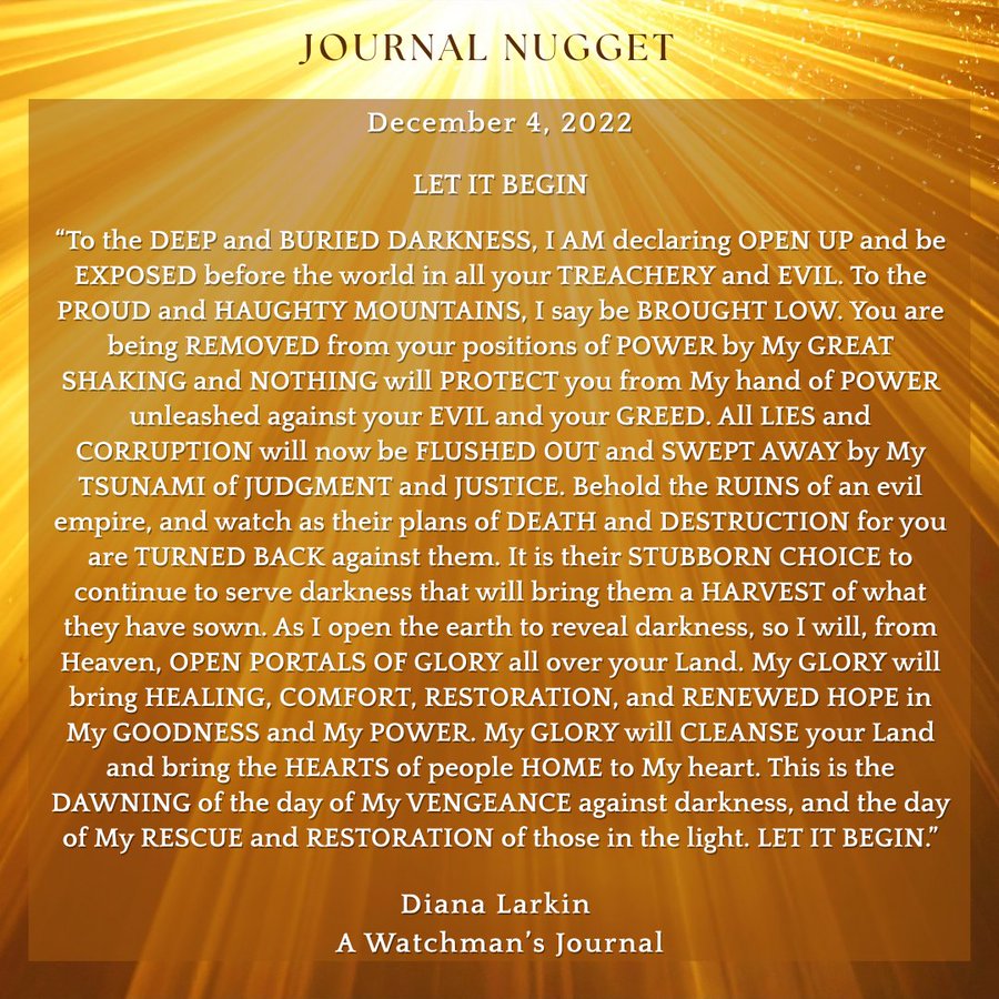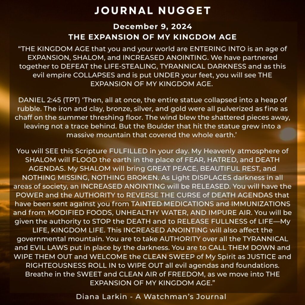 For this is just the beginning. This is just the beginning. So many of my children are hurting, are tired, and yes worn out. For since Charlie Kirk there has been an all out attack on my people. The enemy was so intimidated by the national response that he is losing his mind trying to find a way to stop that which he is powerless to stop. And I have said to you to look at this Christmas and there will be a change in the hearts, and upon the faces of men. Beginning this Christmas season. Yes you have seen what looks like the formation of a giant you fear you won’t be able to beat. Yet this giant they are forming is nothing compared to me. Shout like Caleb and demand the mountain, and indeed all of the seven mountains of influence. For my desire is to topple this demonic regime once and for all and bring my children into my loving embrace. Setting the captives free is my priority and stopping what they are doing to the children. But my children I am partnered with you, and as this is the case you must stand and go to the battlefield, and that is where I will bring the victory. Soon you will see My David do something many are not expecting. This will be a sign to my children confirming what you have been shown, and this narrative I have given to my prophets. For just as it looks like you will be handed over to the globalists you will see Trump wink, and the doors will slam shut all around the deepstate, and there will be nowhere to hide. For the trap they thought they were laying will soon spring upon them, and my people will rejoice in the answers to your prayers you have been waiting on for years now. For the army will soon be activated. Both military and mine and so. It will be known as payback time against the kingdom of darkness and paycheck time for the kingdom of the true light King Jesus/Yeshua!