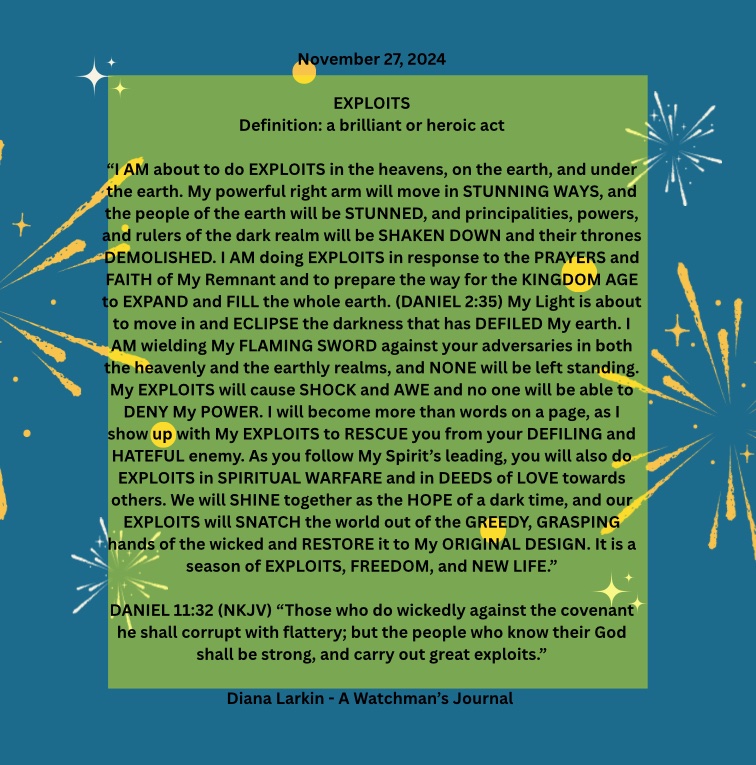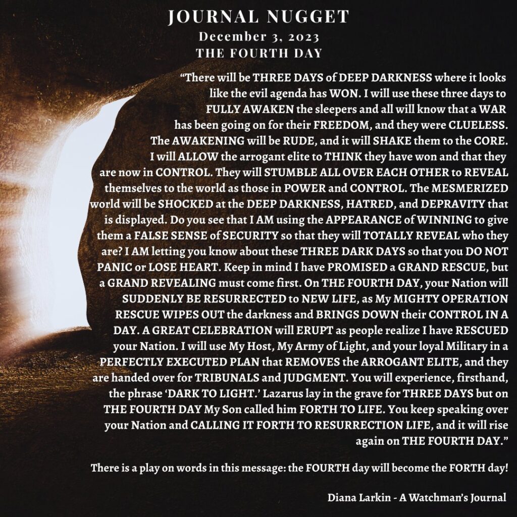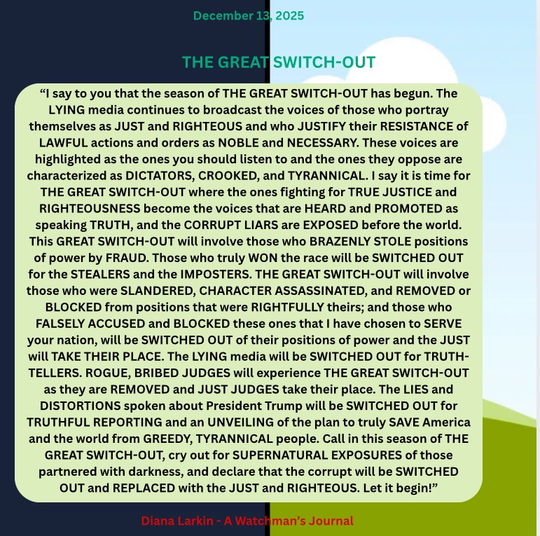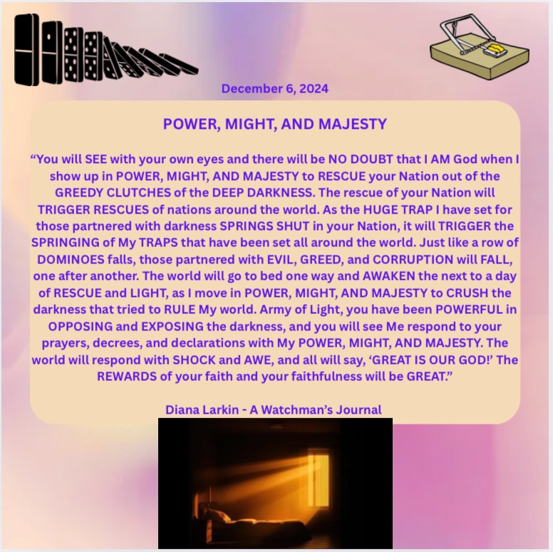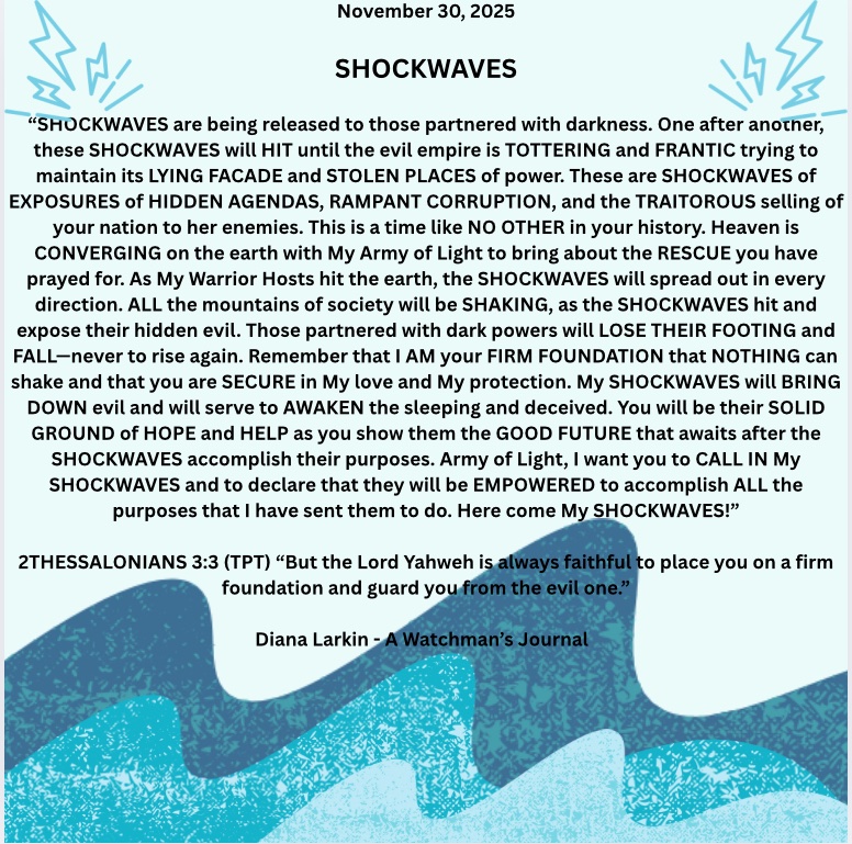 For this is just the beginning. This is just the beginning. So many of my children are hurting, are tired, and yes worn out. For since Charlie Kirk there has been an all out attack on my people. The enemy was so intimidated by the national response that he is losing his mind trying to find a way to stop that which he is powerless to stop. And I have said to you to look at this Christmas and there will be a change in the hearts, and upon the faces of men. Beginning this Christmas season. Yes you have seen what looks like the formation of a giant you fear you won’t be able to beat. Yet this giant they are forming is nothing compared to me. Shout like Caleb and demand the mountain, and indeed all of the seven mountains of influence. For my desire is to topple this demonic regime once and for all and bring my children into my loving embrace. Setting the captives free is my priority and stopping what they are doing to the children. But my children I am partnered with you, and as this is the case you must stand and go to the battlefield, and that is where I will bring the victory. Soon you will see My David do something many are not expecting. This will be a sign to my children confirming what you have been shown, and this narrative I have given to my prophets. For just as it looks like you will be handed over to the globalists you will see Trump wink, and the doors will slam shut all around the deepstate, and there will be nowhere to hide. For the trap they thought they were laying will soon spring upon them, and my people will rejoice in the answers to your prayers you have been waiting on for years now. For the army will soon be activated. Both military and mine and so. It will be known as payback time against the kingdom of darkness and paycheck time for the kingdom of the true light King Jesus/Yeshua!