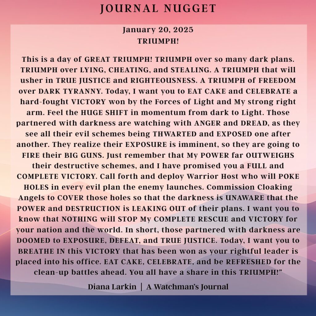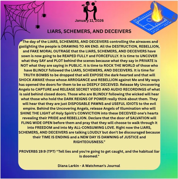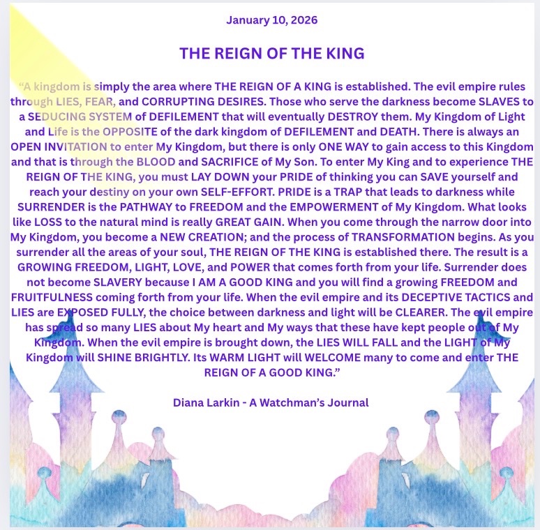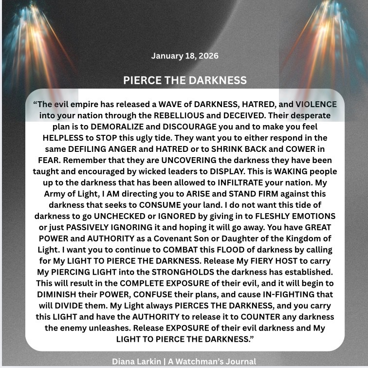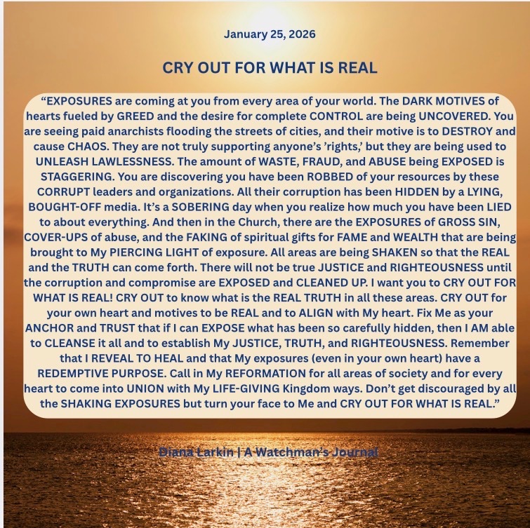 Conversations with GOD – Jan 18-19 2026 Yes, a line was crossed in Minnesota. When the demonically influenced marched into a place dedicated to the worship of the Son of GOD the antichrist spirit showed its ugly face. Not only that but the post about how judgment begins at the house of GOD was ridiculous. I am the one that brings judgment, and yes I sometimes use men to do it, but I do not use those aligned with the kingdom of darkness to bring that judgment in this sense. So now the battle lines were crossed. You will see me respond to this, but much more than that I am looking to see how my children will respond to this. Will you finally say enough is enough? Will you finally stand and tell the devil and his minions where to go? Of course I want you to pray for these who have been brainwashed and used by the kingdom of darkness. As far as Lemon. Your name is Don but you abandon your namesake. You say you are Christian yet your lifestyle is one that makes me puke. So I will show forth how sour this lemon is and he will suddenly see that his voice is like screaming in an empty canyon where he only hears his own echo. Just watch. The enemy went to my sheep spending time with the shepherd. Now you will see David stand against the wolves trying to destroy my flock. Concerning Alberta, all it takes is a spark to ignite a fire that spreads to the rest of the country. Time is not what you think. If I died 2000 years ago, if I died 100 years ago, if I died 1000 years ago what would you do? So many look at the signs of the times and think that because you are seeing a certain thing happening that that means the scripture where I said I will come with the trumpet and the voice of the archangel means that it’s almost over, you only have a few more seconds, and what does this do? It puts you in fight or flight. It puts you in a position that is 100% flesh based. When you only care about your survival you ignore the mission and the kingdom. I said seek first the kingdom of GOD and His righteousness and all these things will be added unto you. I have a better shot at working with my children who have a greater view of longevity, than those who think it’s almost over. Either you will fulfill my word or I will look to a future generation. Do not be afraid of when the trumpet sounds. Be warned that a time will come when you will give an account for what you did in the time I gave to you. Rise and shine! Now! Or I will call on your progeny to do so.