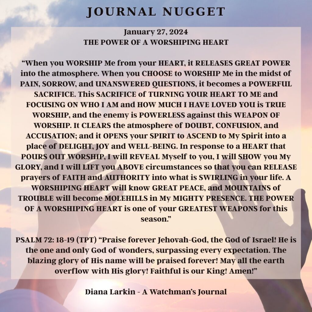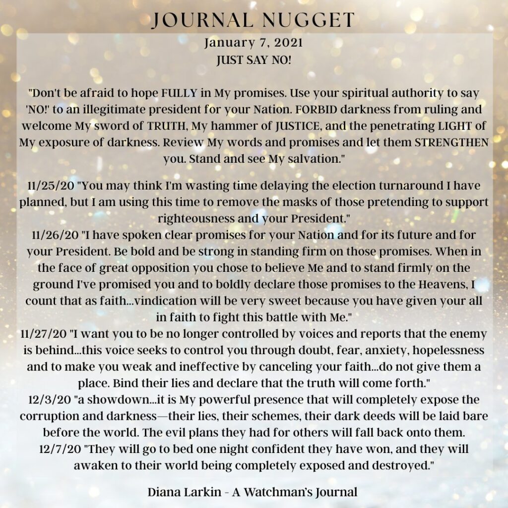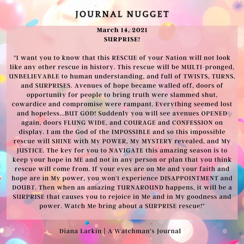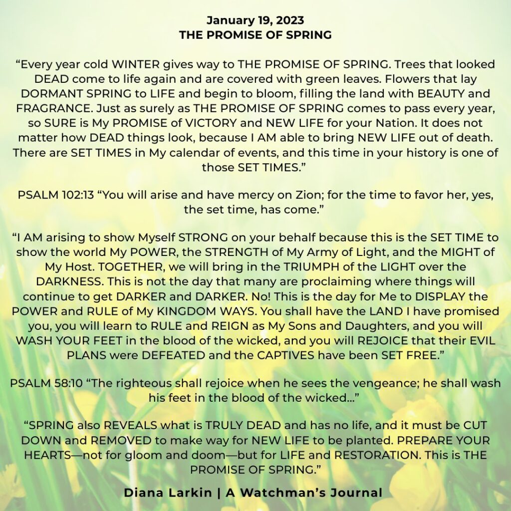 This is the journey of a lifetime, and now you will begin to see how all the hard work will pay off. So do not be afraid of the narrative coming from those speaking doom and gloom. Do not attack them, pray for them. As for you, focus on what I have called you to do. Two things can be true. Time is running out, and my Kingdom will never end. It’s not time is running out as in you only have a few more hours, or days. It is the end of the age of the wicked, and a deliverance of my people, and those who have been brainwashed, and are victims. It is for them to come to the light of the sons and daughters of GOD, for them to be part of the harvest that I have planned. Like you heard Carolyn say people will be needed to disciple, love, and train them. This is true. So watch my hands and how they work this year through my children. The gates of hell shall not prevail!