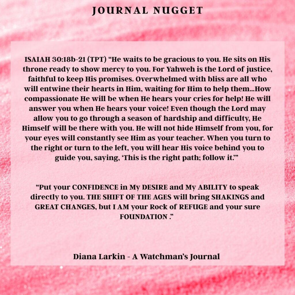 I prepared you to be bold and speak the truth. Even if that means sharing your testimony. It means standing firm against the kingdom of darkness and not hiding. Be bold and courageous. I am behind you and fighting for you. You have questions. Ask them. You have worries so bring them to me. I gave you your heart’s desires. I did this to give you the desires of your heart. Fear no evil as you walk through the valley of the shadow of death. There are those who went through the red, or reed sea. They walk with water walls, and it was a valley of the shadow of death. Yet, what happened was I brought them through on dry ground. Do not be disconcerted. I am with you and chose you to walk this path to fight this battle because others were unwilling.