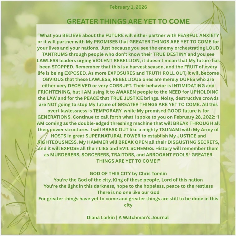 Know this. Until I give the order you are still watching a show. It is scripted, and you are seeing actors. This isn’t the end for you. This is only the beginning. The wicked will be dealt with in a moment. And yes it will come suddenly. You will wake up in a new world because once I give the order the Media will have no choice but to report what I say. Just as Kim Clement prophesied. So stand strong. 2026 will be the year of the fix but not in the sense of the enemy winning, and fixing it so they stay in power. I have thought about this thoroughly, and my plan is foolproof.