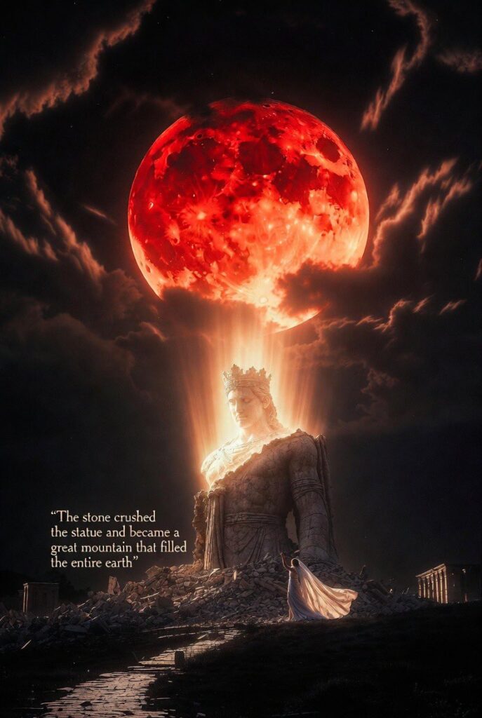 Much of what you are seeing is “wag the dog.” Much of what you are seeing has already happened. And much of what you are seeing is a test. Yes pray for the people who are called by my name to take the reins of the country that is under the microscope. The heavens declare the glory of GOD and this blood moon is the same. It is not a warning for my children but it is a warning for the wicked who choose to not repent. This is the time of escalation and it is also the time of rapid succession. Many things will happen quickly. This is the time of acceleration. Not for the kingdom of darkness but for my beloved bride and the kingdom to be established. The stone crushed the statue and became a great mountain that filled the entire earth. That is what I have sent you here to proclaim. You will see miracle after miracle in the coming days. I am your provider so look to me and not the videos or the narrative that the enemy wants you to believe.