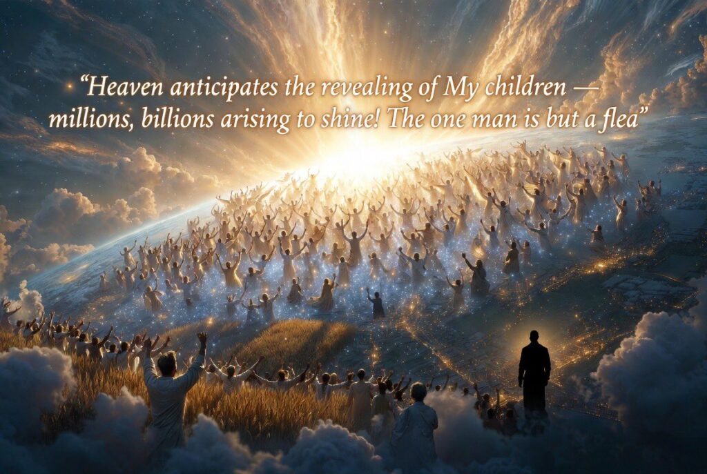 The enemy is looking to raise up one man. Those who are listening to fear are focusing on one man to come. They are putting their precious thoughts, time, and resources into trying to figure out when the antichrist is coming. Now I want you to see from Heaven’s perspective. Heaven is not anticipating and looking for this one man. This one man is only a small flea compared to me. Heaven is anticipating and looking for not one man, but millions, if not billions to arise and shine and be the revealed children of GOD. The entire creation is not looking for the one man that you call the “Christian boogie man.” No, creation is crying out for my children to be revealed. That is the narrative and the day you are living in. So take your focus off of the agenda of the kingdom of darkness and even of what they plan to do with my Israel. I will fulfill prophecy when I say it is time, and not a moment before that. No one forces my hand or commands me of when to bring to pass what I have written through my servants. So look at my hand moving in the earth to awaken and raise up my children for this great harvest and conquering of the kingdoms of the world!